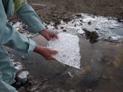 10月10日(月)には鶴ヶ池で初氷が観測されました。