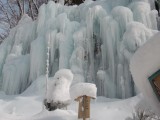 鍾乳洞の最終出口から駐車場へ戻る帰路の左手岸壁に巨大氷の渓谷が出現!